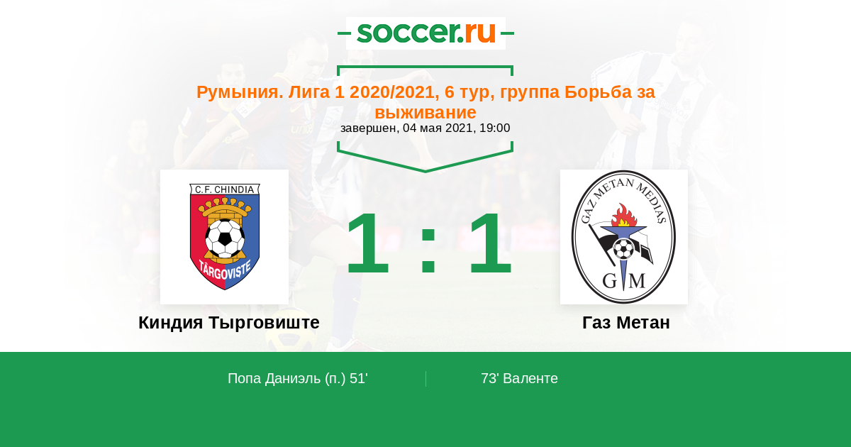 51' (1:0) Попа Даниэль (19)