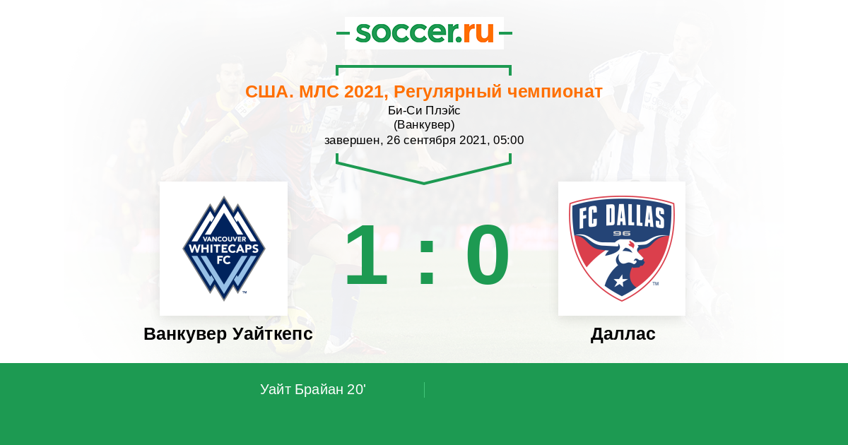 20' (1:0) Уайт Брайан (24) (Тейберт Расселл (31))