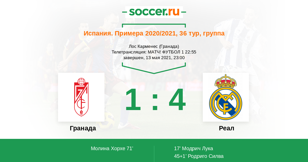 Реал с Победой! Они сделали то,что должны были сделать. Отыграли на лёгкой ноге, правда в начале второго тайма отдали инициативу, думали что гандикап который был сделан два мяча хватит для лёгкой прогулки до конца матча. И чуть не поплатились, Гранада начала поддавливать Реал, прижала их к своим воротам и добились своего, забив красивый гол в ворота Реала и не сбавляя темпа хотели додавить и создавали моменты которыене смогли реализовать. Куртуа сегодня был герой этого матча , спасший ворота Реала от ненужных голов. Но вовремя Реал опомнился и быстро решил проблему которую сами себе создали. Забив ещё два мяча в ворота Гранады и тем самым решили исход матча. Ещё раз поздравляю Реал с победой! Удачи в предстоящих двух матчах!