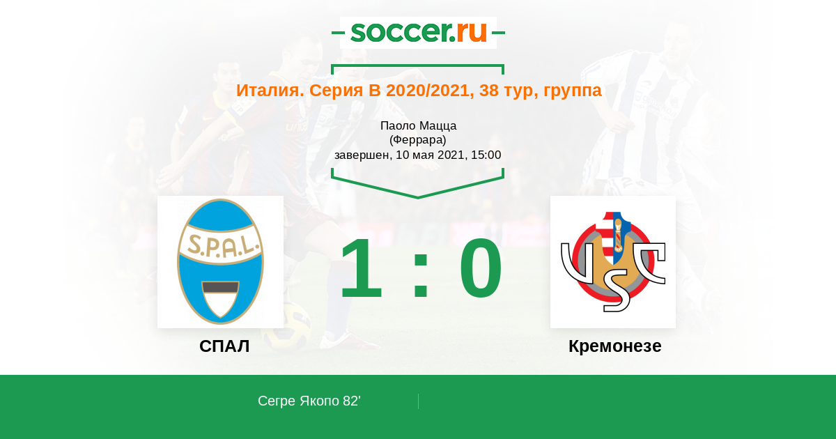 82' (1:0) Сегре Якопо (5) (Сек Демба (80))