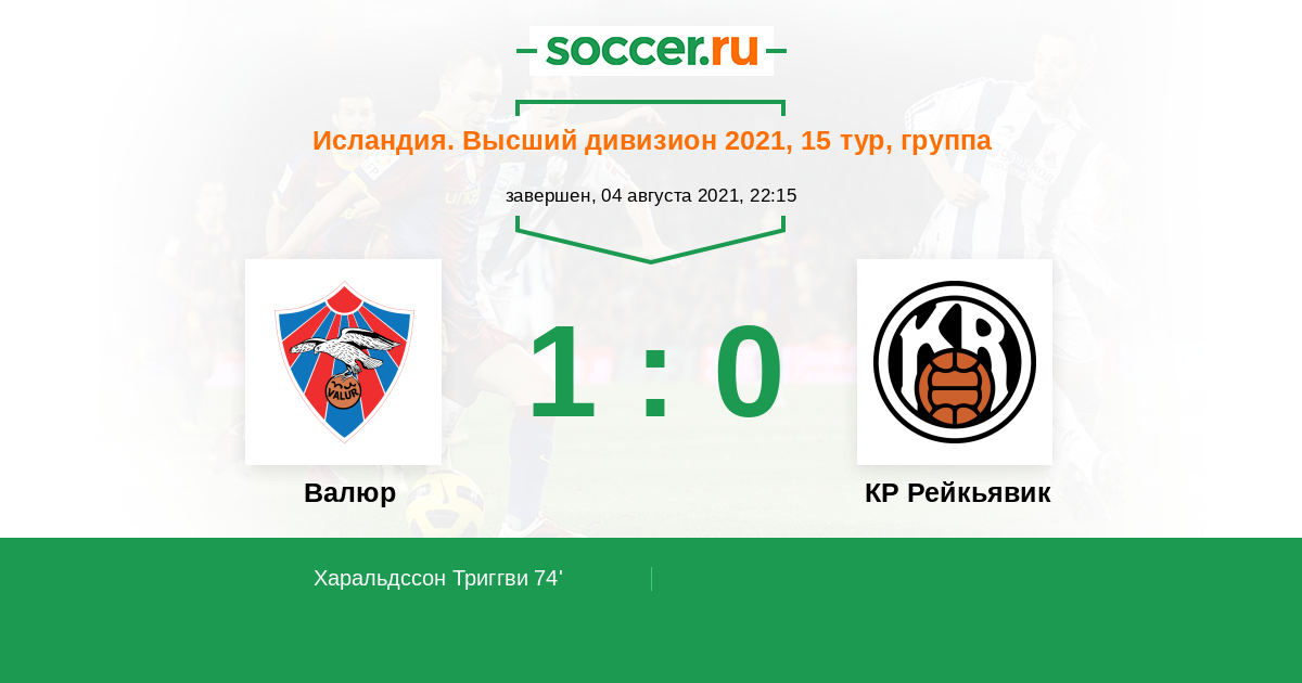 74' (1:0) Харальдссон Триггви (12) (Сигурдссон Кристинн (10))