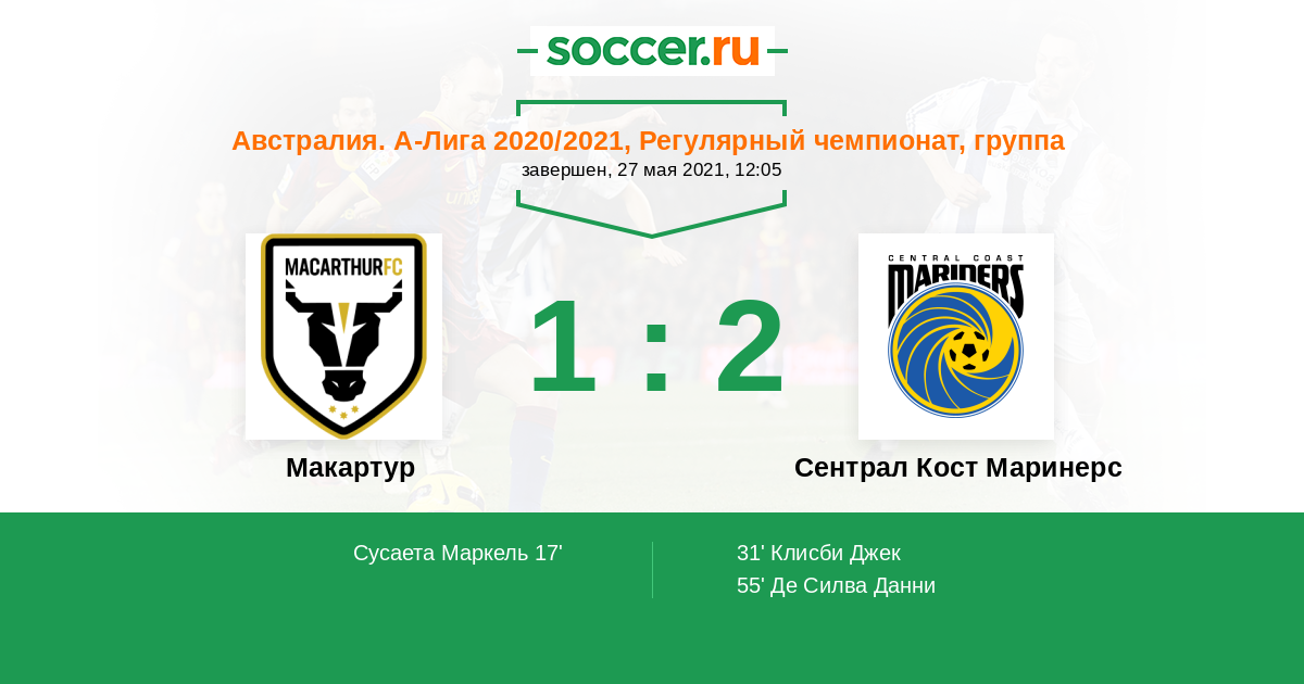 55' (1:2) Де Силва Данни (10) (Уренья Маркос (12))