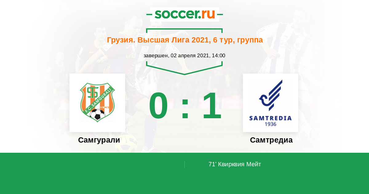71' (0:1) Квирквия Мейт (7) (Кобахидзе Отар (9))