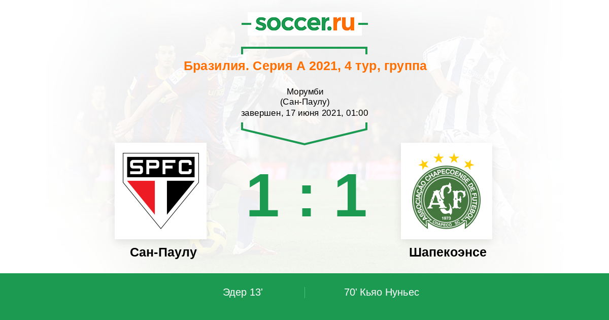70' (1:1) Кьяо Нуньес (96) (Лима Гилерме (32))
