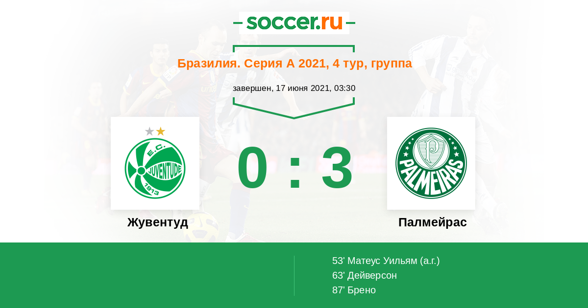53' (0:1) Автогол Матеус Уильям (19)