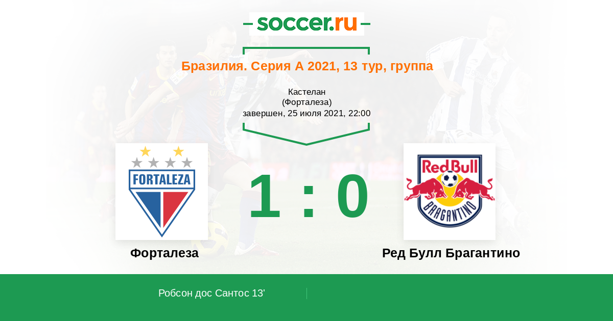 13' (1:0) Робсон дос Сантос (7) (Яго Пикачу (22))
