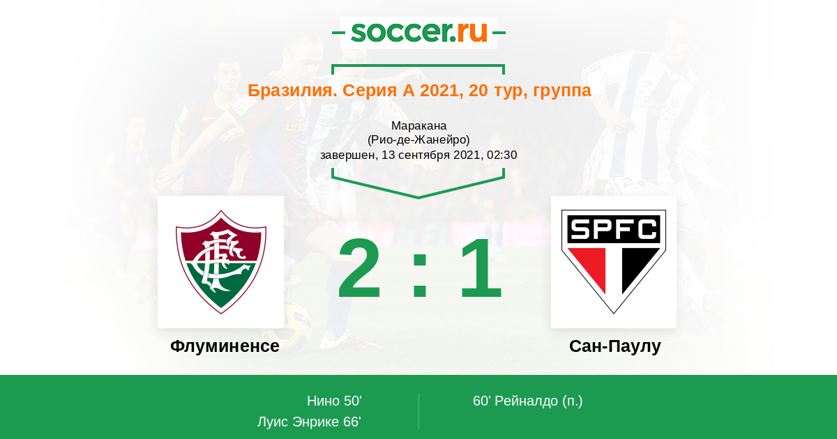 66' (2:1) Луис Энрике (34) (Фред (9))
