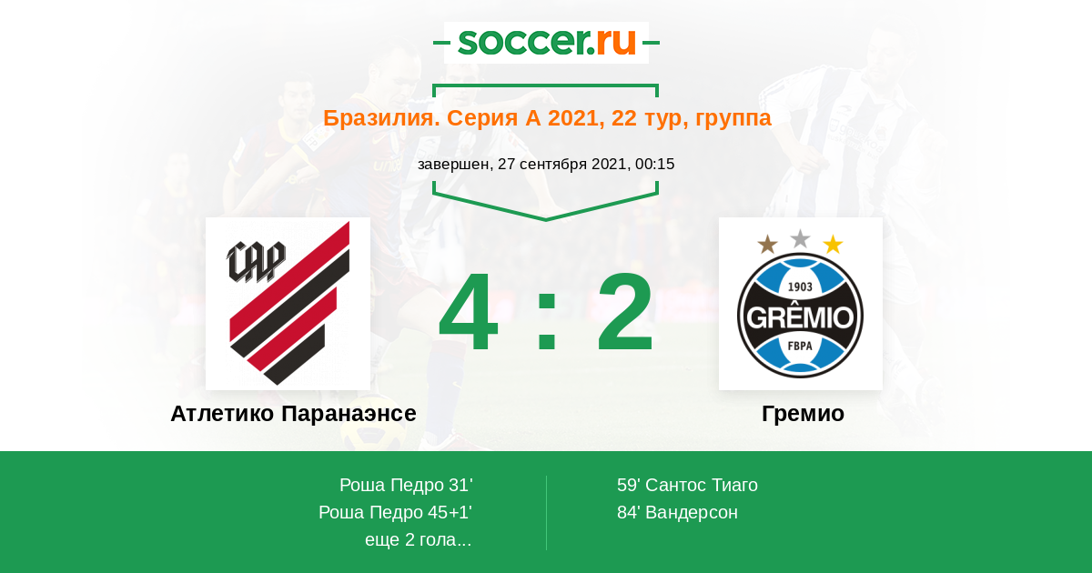 59' (3:1) Сантос Тиаго (5) (Вандерсон (35))