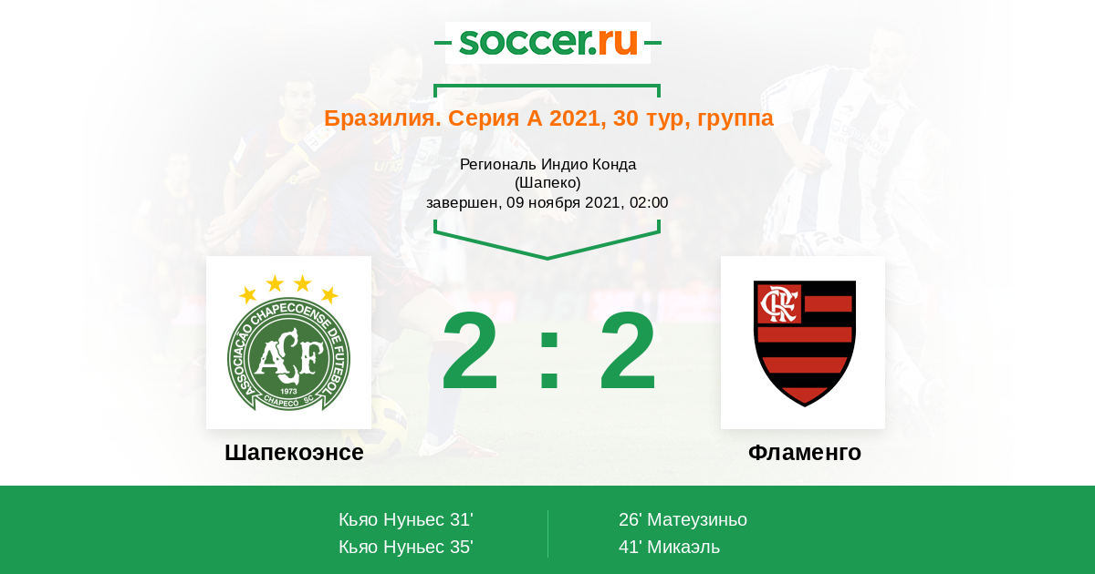 41' (2:2) Микаэль (19) (Барбоса Габриэль (9))