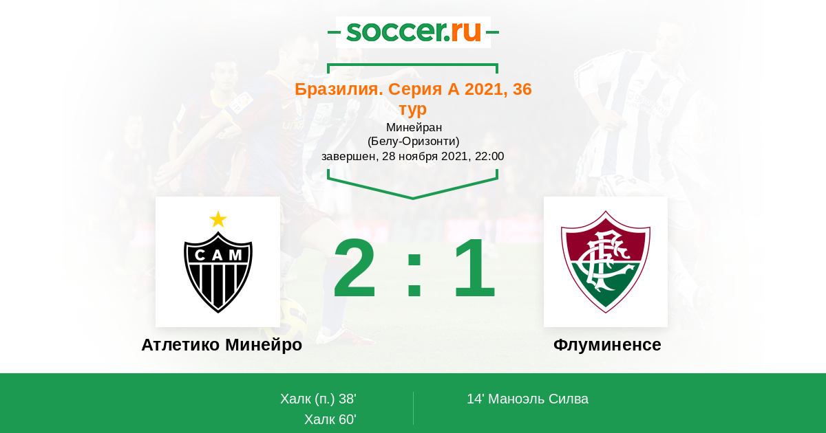 14' (0:1) Маноэль Силва (26) (Марлон (30))