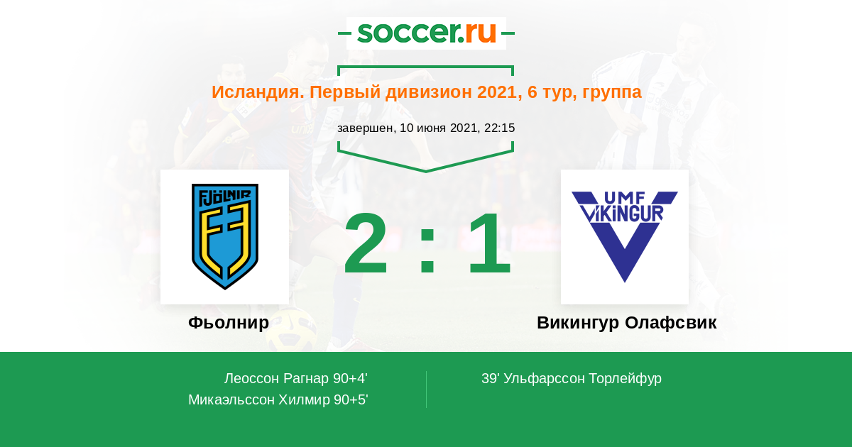 39' (0:1) Ульфарссон Торлейфур (Дейл Джеймс)