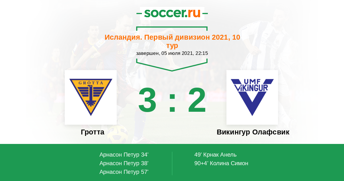 90+5' Эйрикссон Олафур