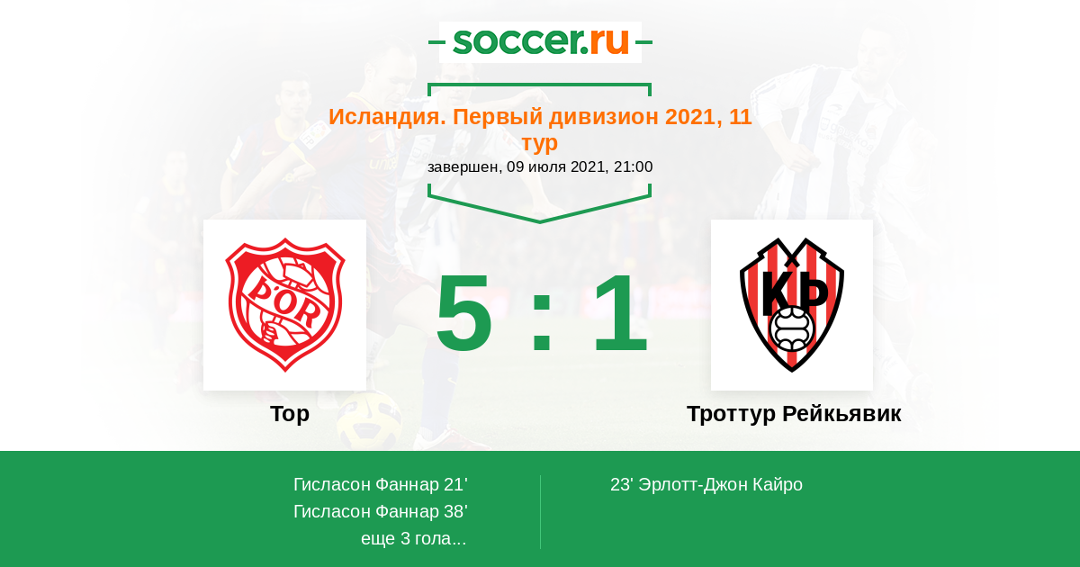 21' (1:0) Гисласон Фаннар