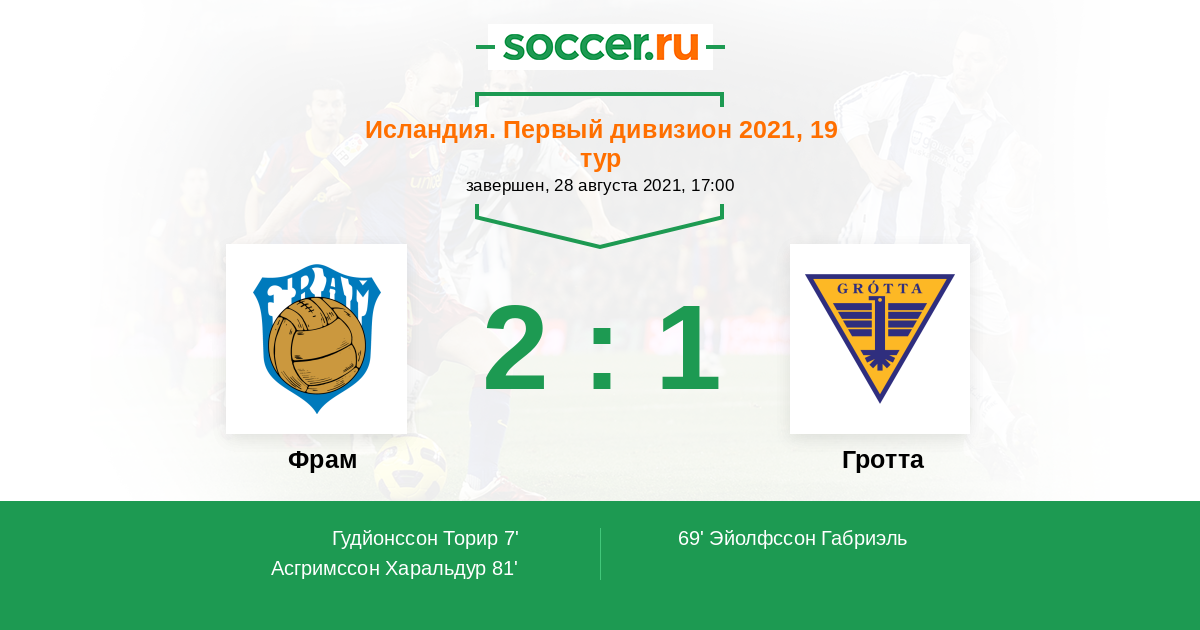 81' (2:1) Асгримссон Харальдур