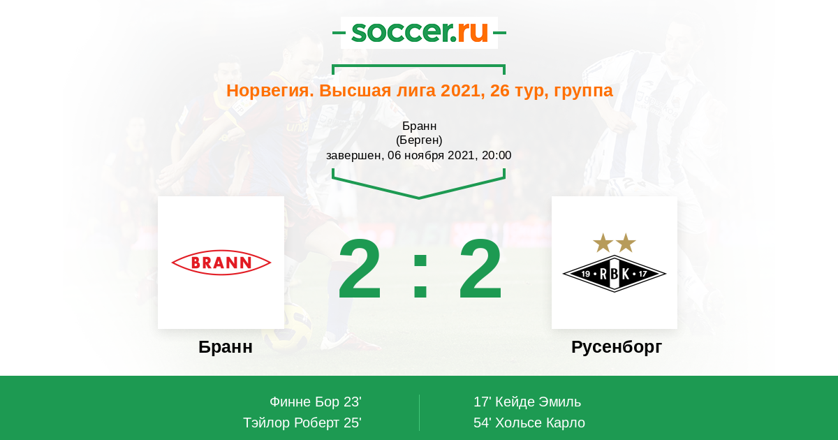 54' (2:2) Хольсе Карло (11) (Даль Рейтан Эрленд (2))