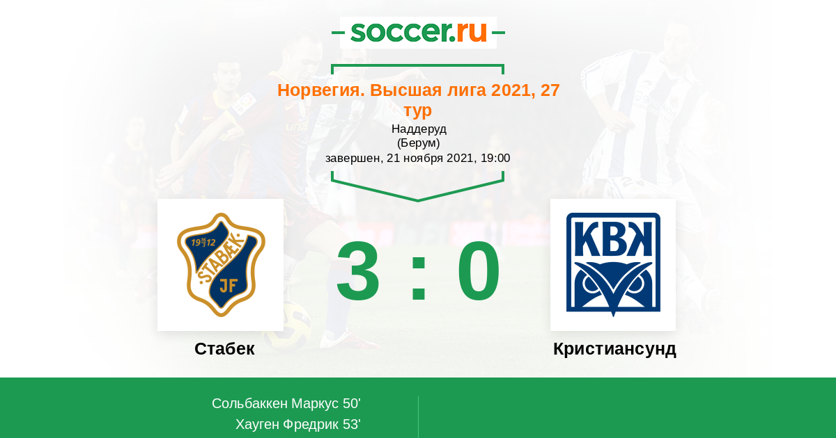 50' (1:0) Сольбаккен Маркус (10) (Хауген Фредрик (8))