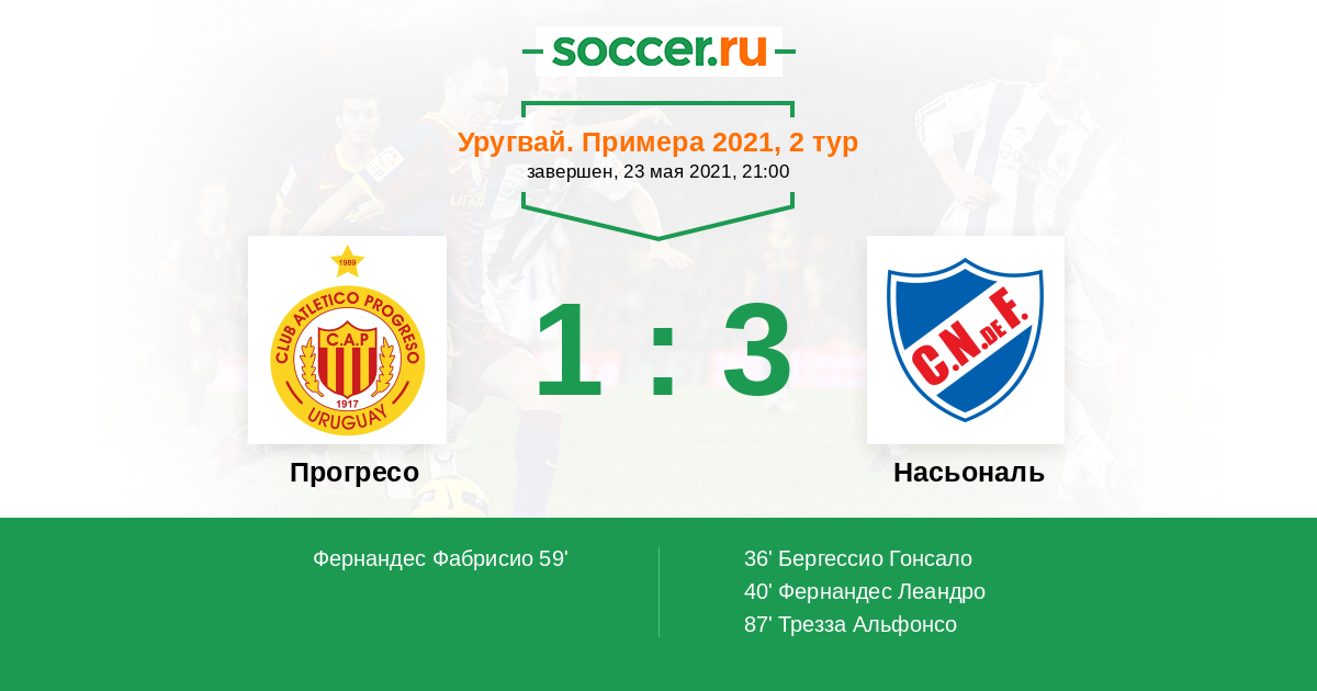 59' (1:2) Фернандес Фабрисио (21)