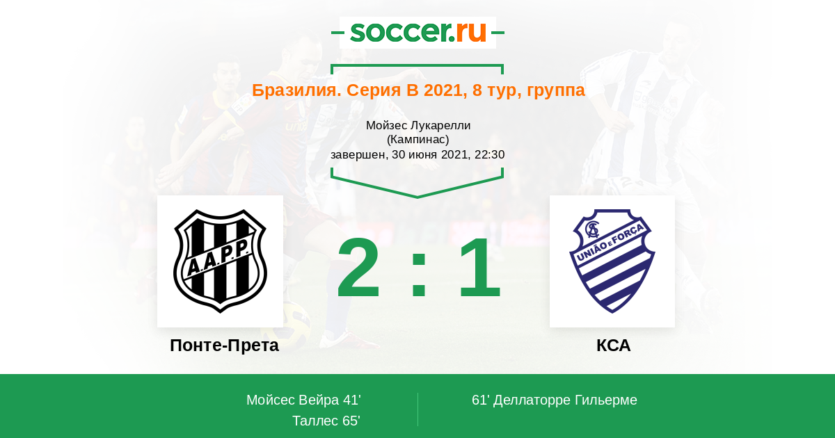 61' (1:1) Деллаторре Гильерме (9) (Ренато Каха (10))
