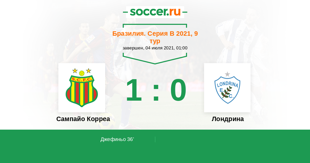 36' (1:0) Джефиньо (9) (Силва Жан (7))