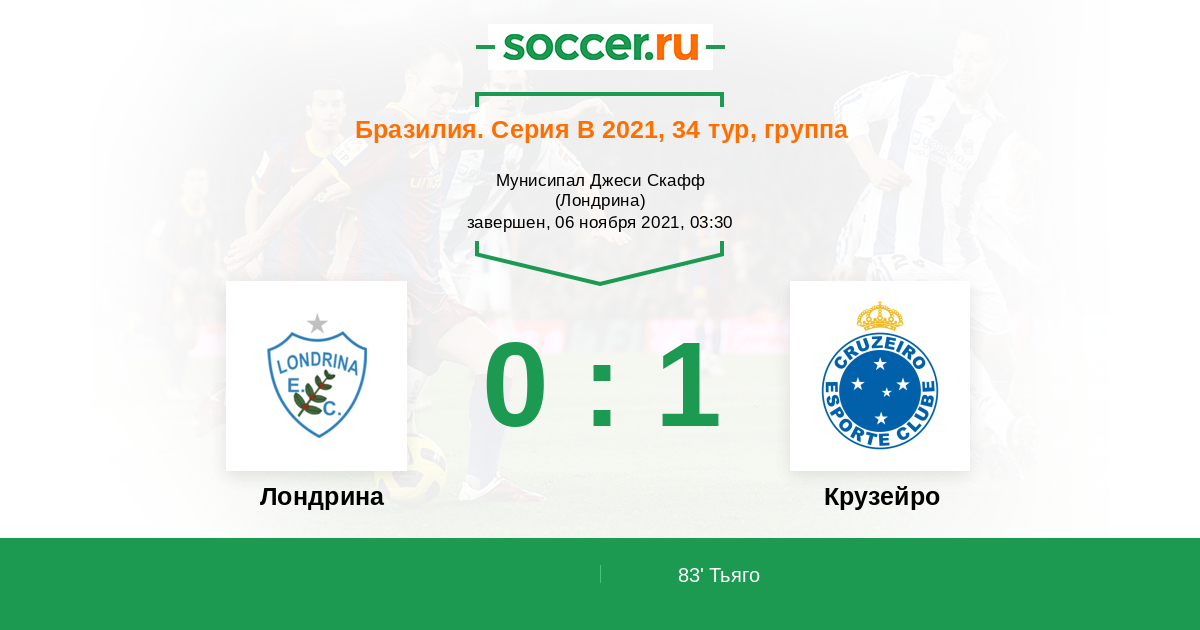 83' (0:1) Тьяго (18) (Аугусто Фелипе (22))