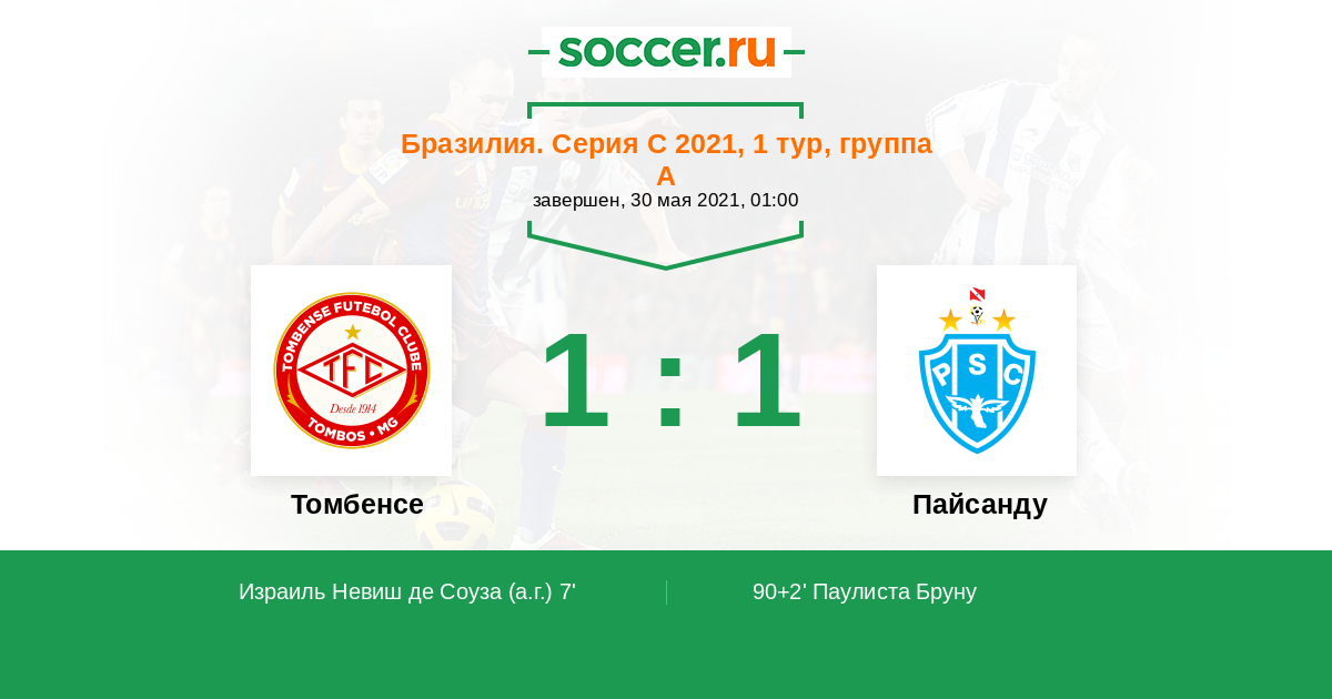 7' (1:0) Автогол Израиль Невиш де Соуза