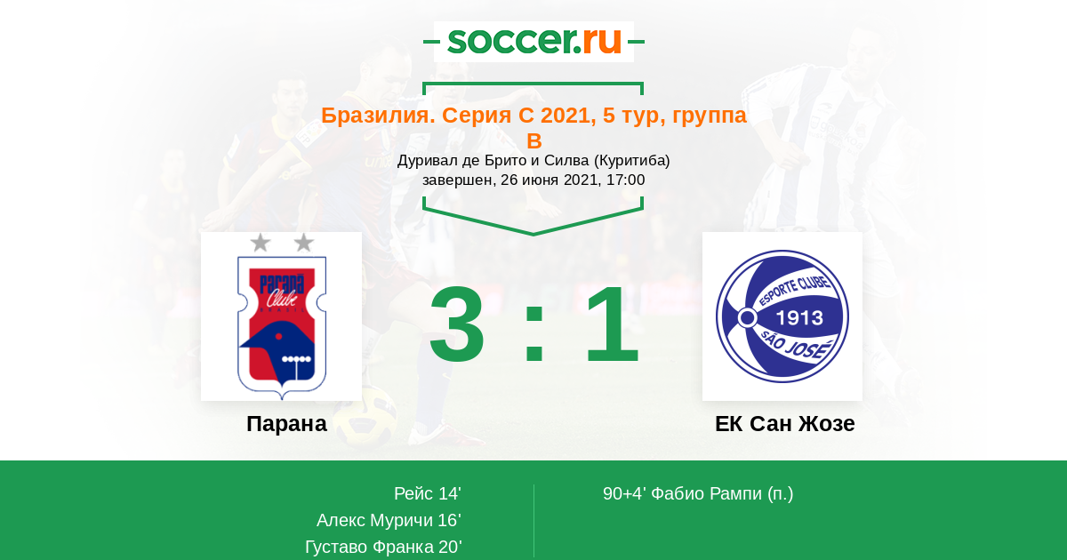 Запасные: Хуртадо Хайдерсон (с 66'), Педро (с 66'), Лукас Сантос (с 68'), Эбере Осиначи (с 68'), Ромуло (с 79'), Лукас Вингерт, Брайан, Кастанья, Эриван, Леандро Филипе, Лукас Сене, Микаел