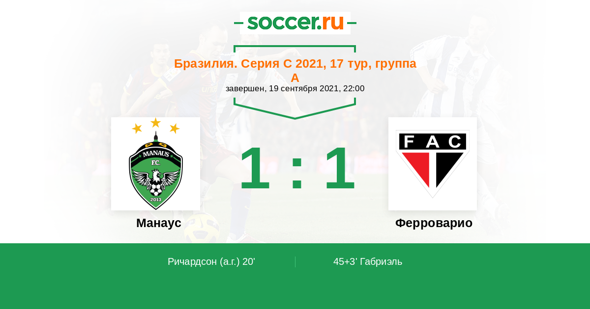 20' (1:0) Автогол Ричардсон