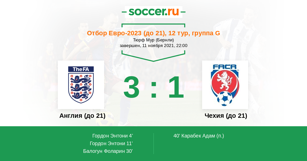 Англия (до 21) - Чехия (до 21)