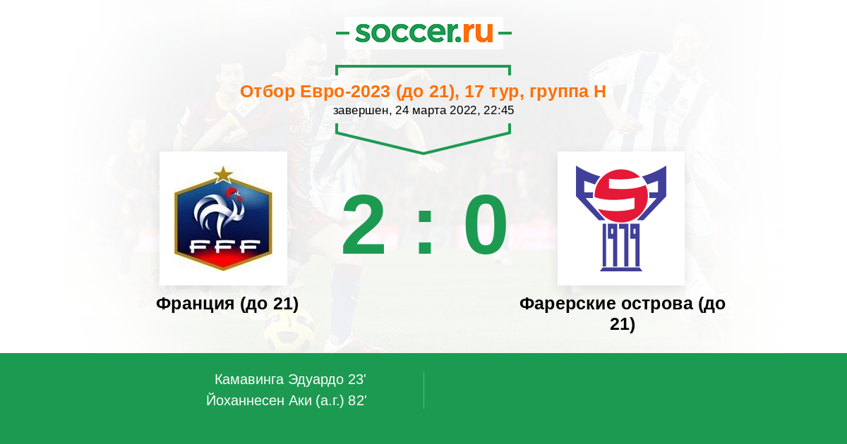 Запасные: 14 Русборг Элиас (с 29'), 4 Агнарссон Мартин (с 60'), 6 Эрегард Гиллбрандур (с 60'), 19 Нильсен Йерген (с 61'), 18 Йохансен Андрасс, 23 Морк Бьярти, 7 Йоханнесен Йонн, 12 Давидсен Йоаннес, 13 Самуэлсен Аки Дебес