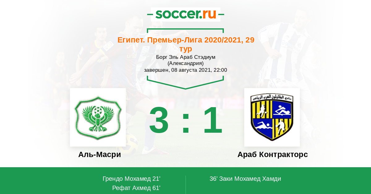 Запасные: 15 Гомаа Ахмед (с 61'), 27 Али Хассан (с 78'), 13 Салах Ислам (с 85'), 25 Атейа Ислам, 11 Габер Мохаммед, 18 Солтан Мостафа, 9 Касенгу Казади, 34 Фараг Зияд, 16 Массуд Ахмед