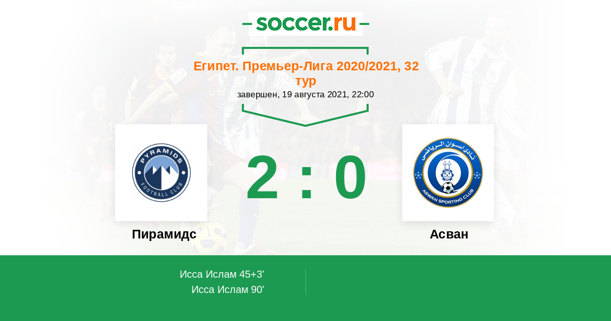 45+3' (1:0) Исса Ислам (8) (Хамди Мохамед (21))