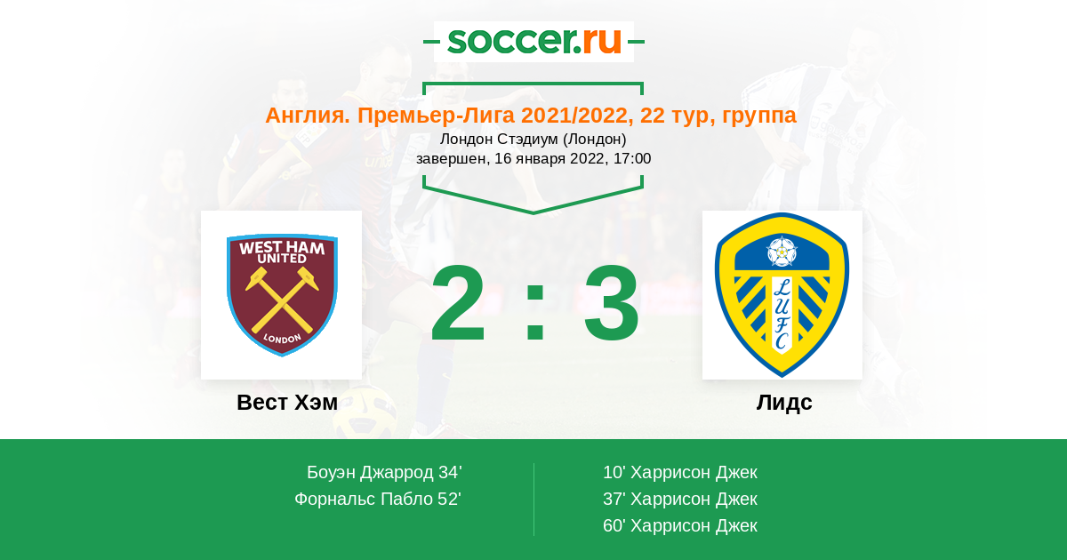 60' (2:3) Харрисон Джек (22) (Рафинья (10))