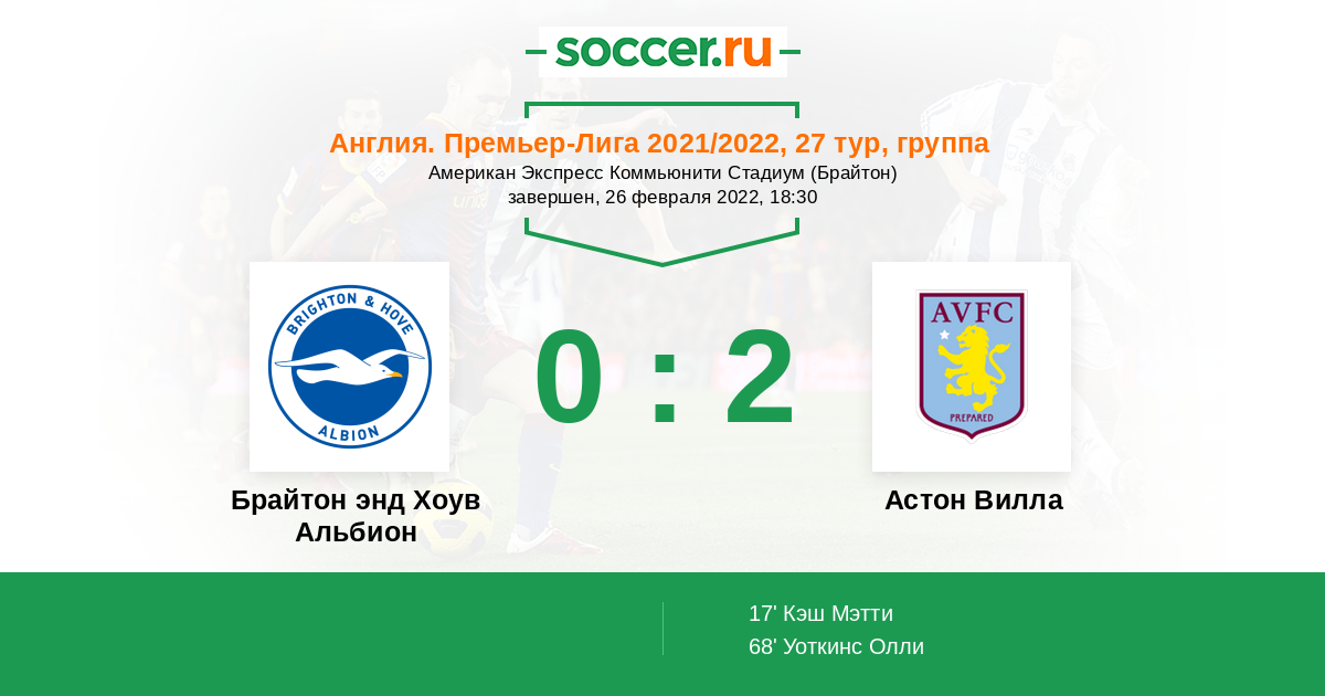 68' (0:2) Уоткинс Олли (11) (Мингс Тайрон (5))