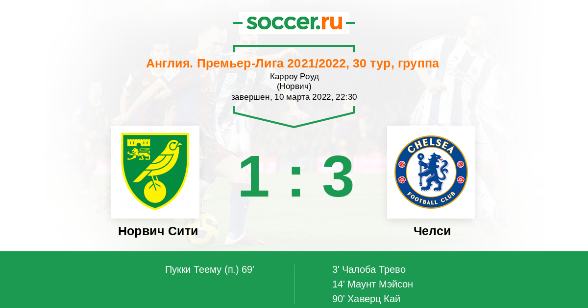 3' (0:1) Чалоба Трево (14) (Маунт Мэйсон (19))