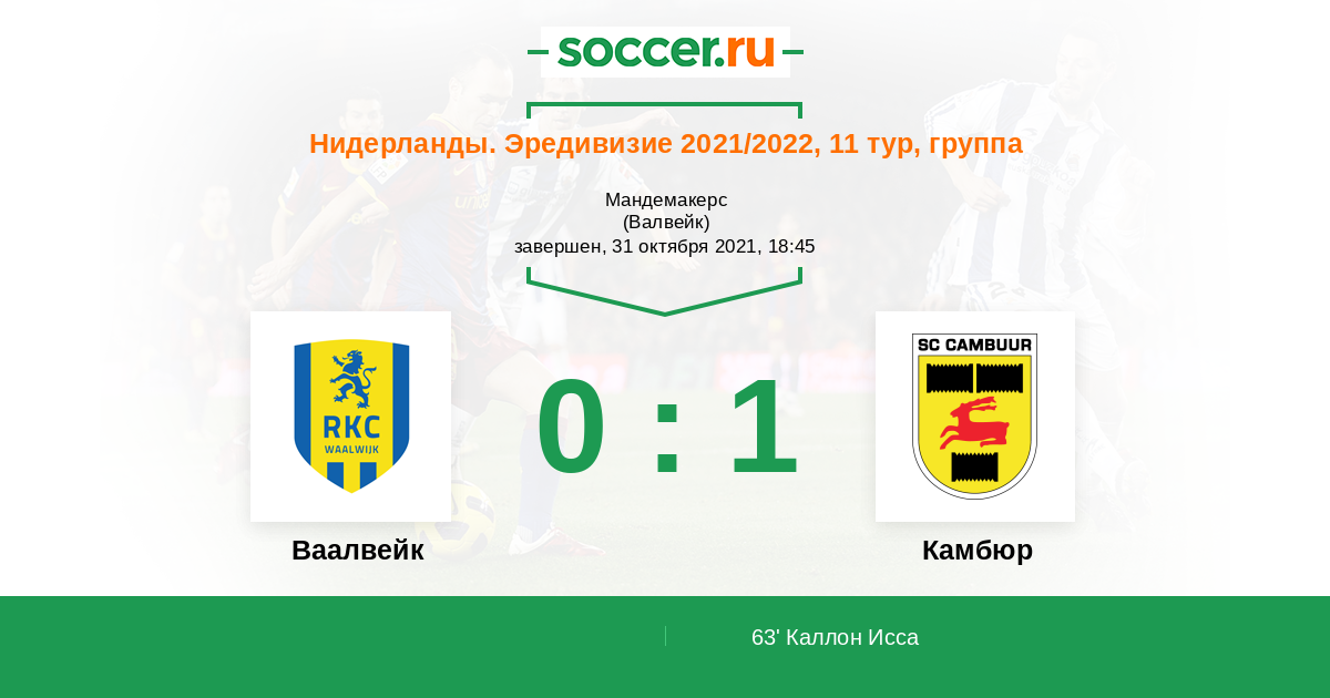 63' (0:1) Каллон Исса (7) (Дудеман Ник (17))
