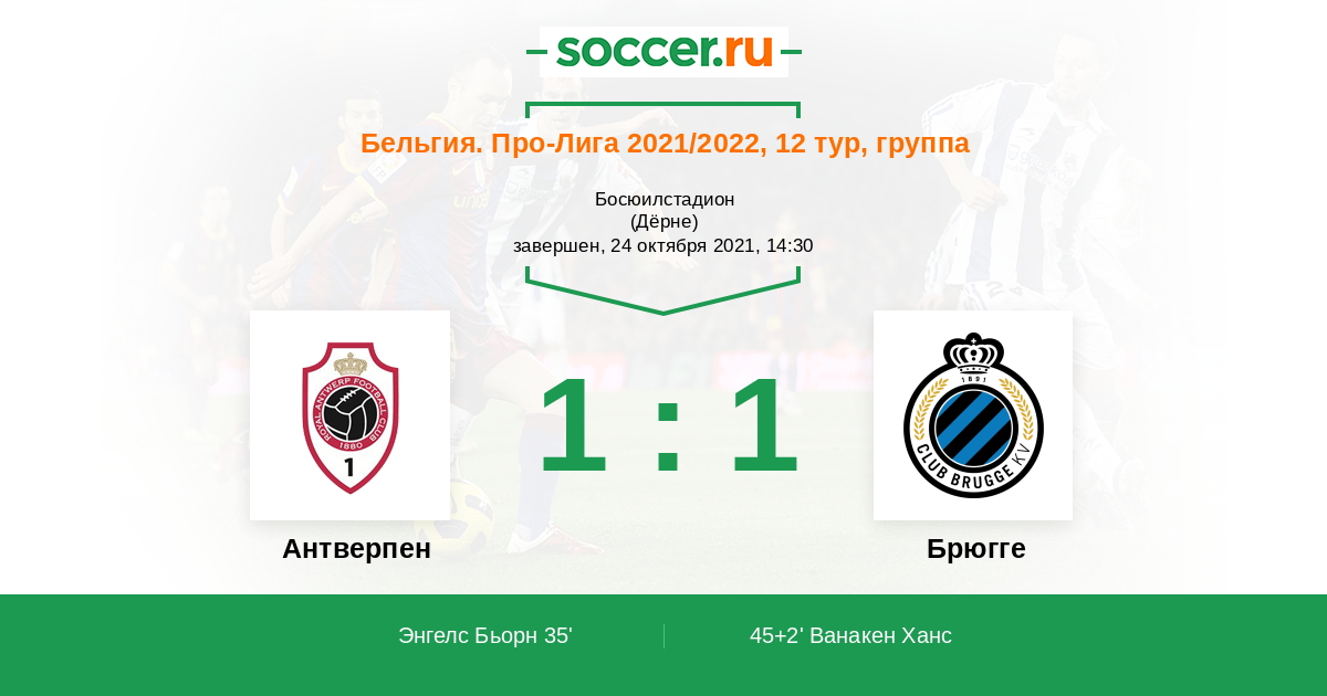 45+2' (1:1) Ванакен Ханс (20) (де Кетеларе Шарль (90))