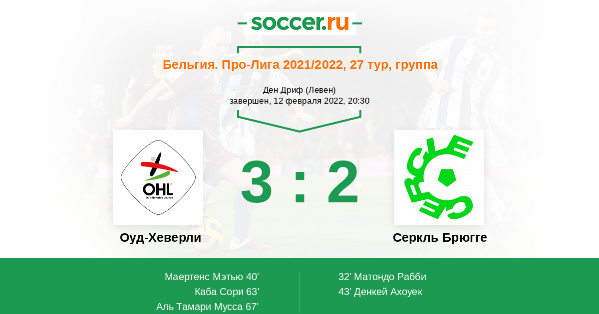 63' (2:2) Каба Сори (9) (Де Норре Каспер (24))