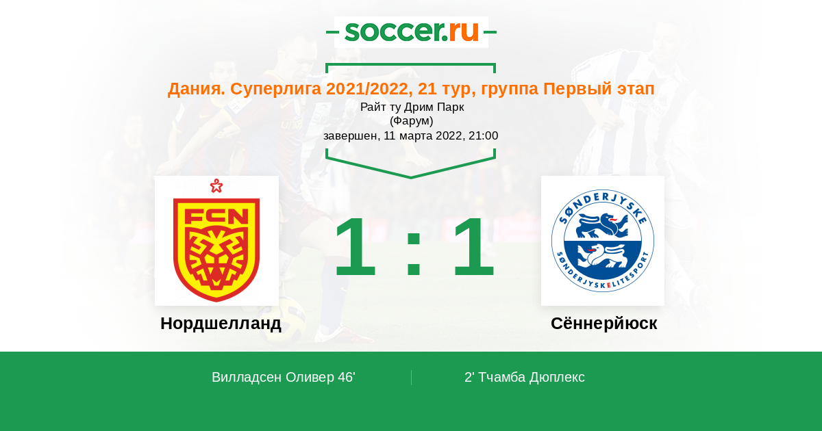 2' (0:1) Тчамба Дюплекс (4) (Томсен Николай (10))