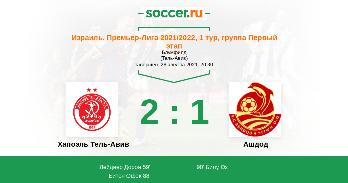 Запасные: 20 Фарлей (с 61'), 9 Азулай Шломи (с 73'), 17 Битон Офек (с 85'), 28 Томер Йоав (с 85'), 15 Азуги Алон, 25 Диба Джордж, 29 Изан Шай, 77 Твизер Раз, 92 Бекер Игал