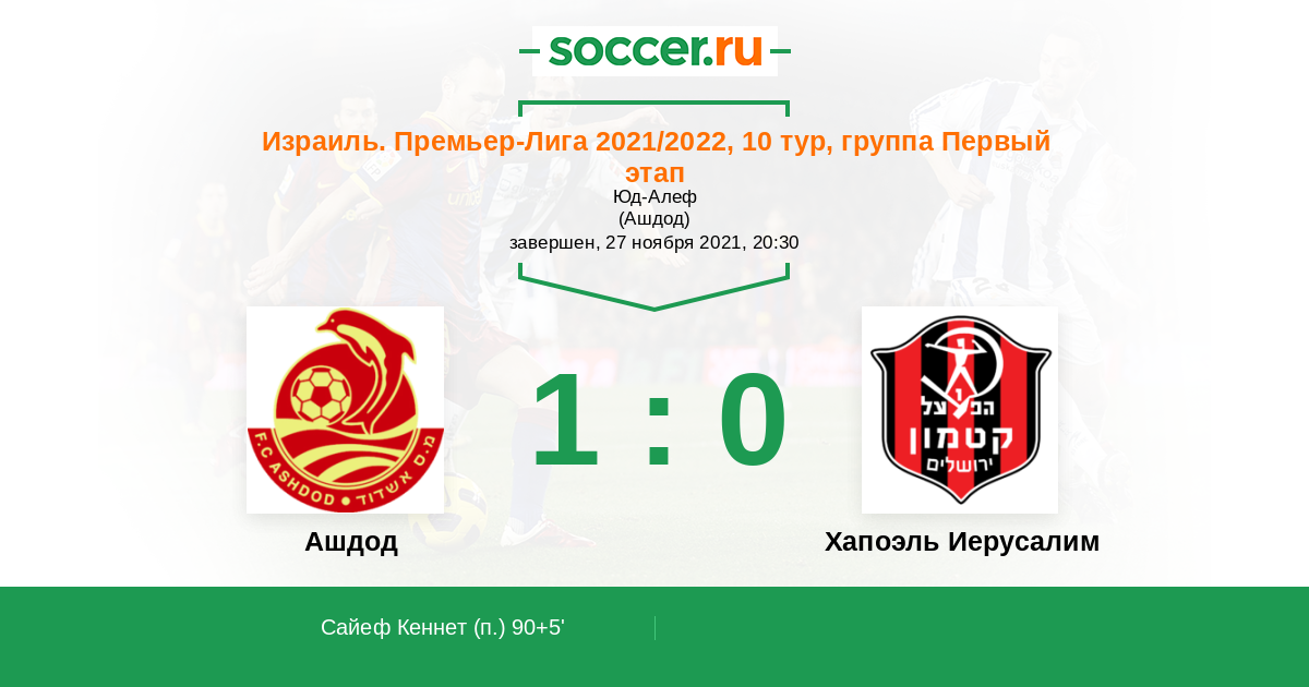 Запасные: 8 Канаан Мохаммад (с 57'), 16 Засно Зохар (с 67'), 17 Матеусиньо (с 67'), 26 Мугис Абдул (с 73'), 77 Берихон Яков (с 73'), 6 Абу Акел Фирас, 9 Хараш Шалев, 13 Камахени Монтари, 41 Хассон Сахар