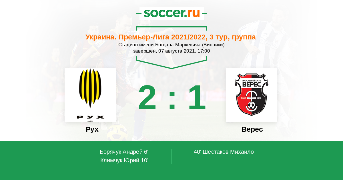 6' (1:0) Борячук Андрей (45) (Мысик Марьян (17))