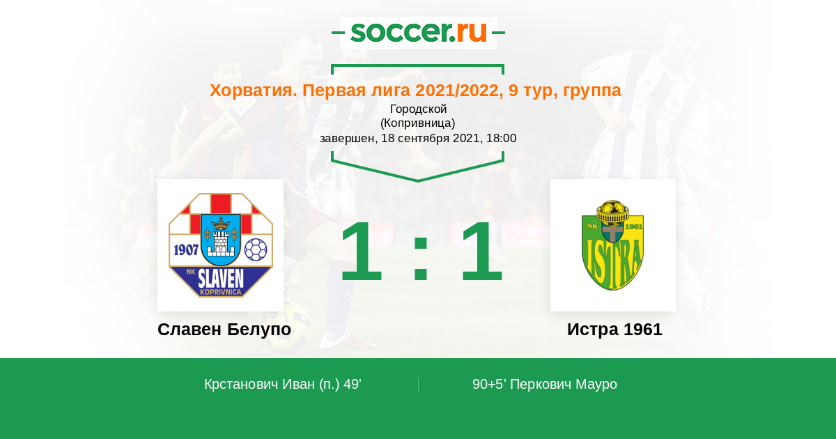 90+5' (1:1) Перкович Мауро (39) (Славко Благоевич (7))