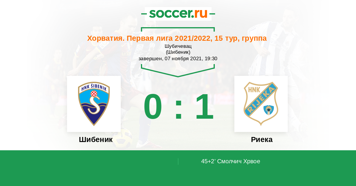 45+2' (0:1) Смолчич Хрвое (36) (Вукчевич Андрийя (12))
