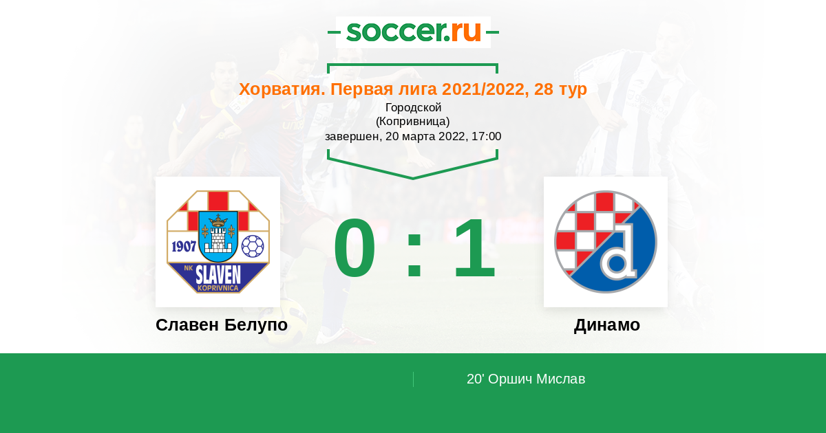 20' (0:1) Оршич Мислав (99) (Шутало Йосип (37))