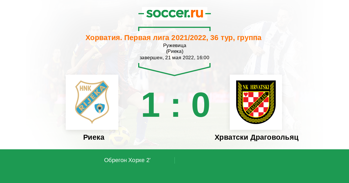 2' (1:0) Обрегон Хорхе (9) (Велкоски Дарко (14))