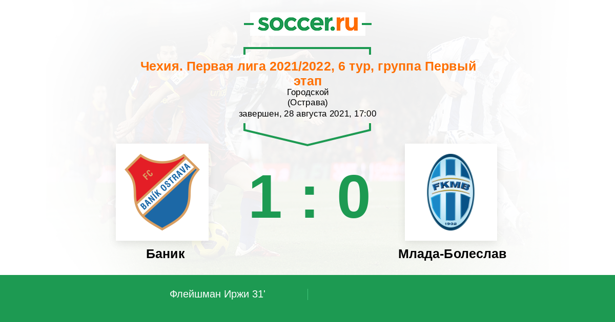 31' (1:0) Флейшман Иржи (25) (Ндефе Джигли (77))