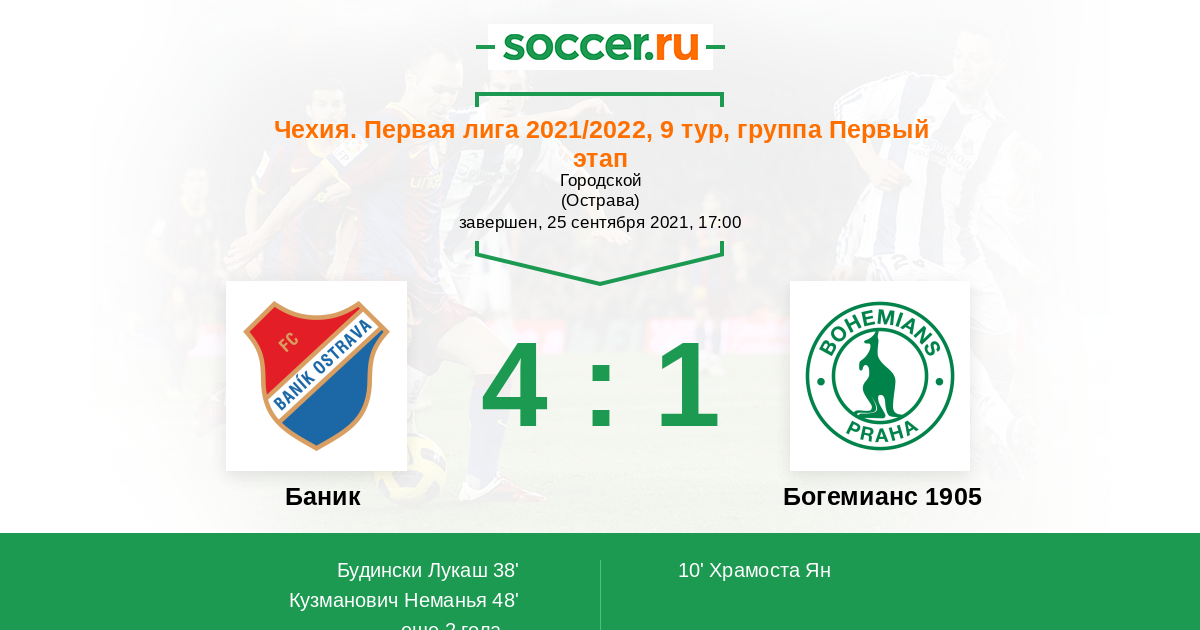 66' (3:1) Покорны Якуб (20) (Флейшман Иржи (25))