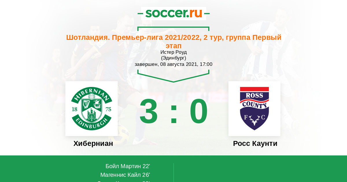 22' (1:0) Бойл Мартин (10) (Ньюэлл Джо (11))