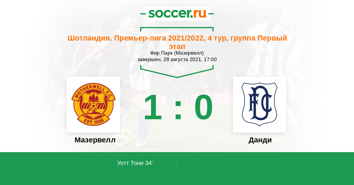 34' (1:0) Уотт Тони (32) (Кэролл Джейк (3))