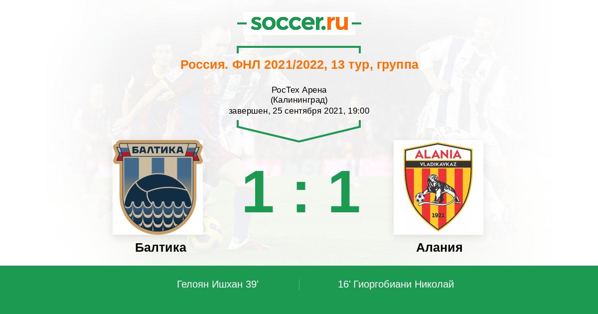 39' (1:1) Гелоян Ишхан (70)